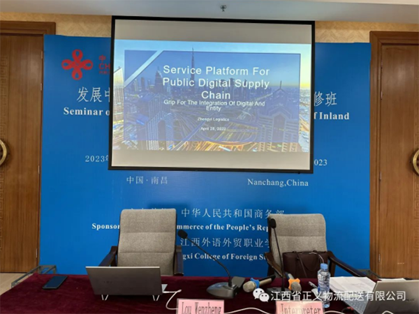 4月28日,江西正义物流受邀至外语外贸学院,向加纳、尼日利亚、乌兹别克斯坦等国家共计11位官员就“公共数字化供应链服务平台数实融合抓手”主题进行演讲。